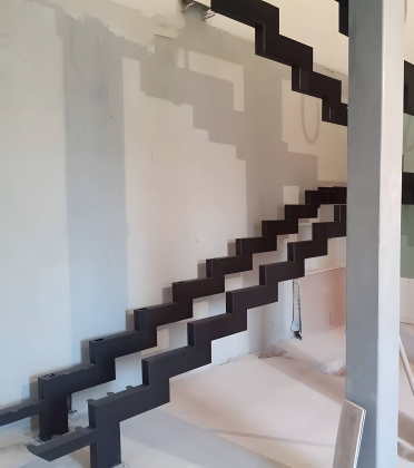 Лестничный каркас из профильной трубы изготовлен под заказ для частного дома.
